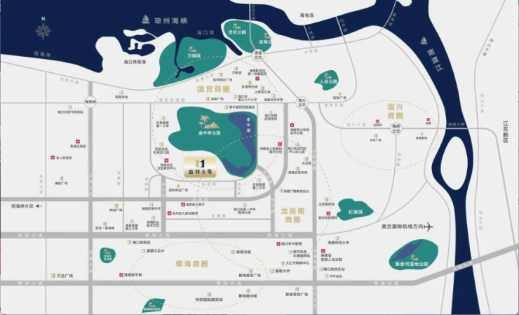 城市干道:扼守海秀路、海秀快速路、椰海大道、丘海大道、龙昆南路等城市主干道。
