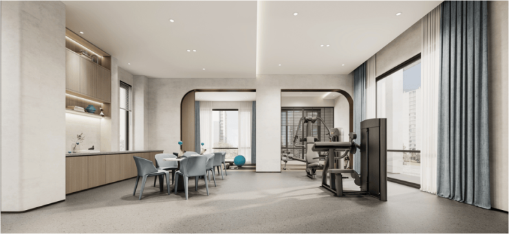 架空层设计:儿童淘气堡、图书馆、健身房、棋牌室、等社区配套,为业主提供沉浸式家庭社交景观。