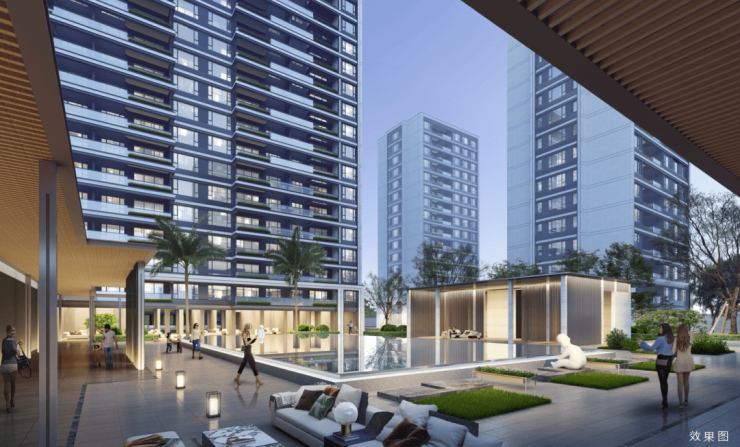 景观设计:由奥雅设计打造轻奢度假酒店式园林,以 “一轴、一街、六节点”,营造 “叠瀑浮岛”“童梦森林”“礁石海岸”“山海云辰” 特色组团,强调现代精致的 “都市感”、绿色花园社区的 “自然感”、轻奢休闲的 “度假感”。