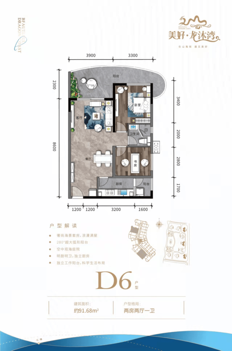④ 三房户型三面采光,空间方正合理,双独立明卫,270°环型瞰海阳台