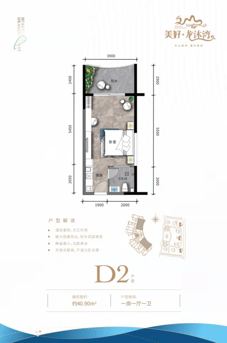 ① 开间户型独立明卫,各功能区域俱全,瞰景阳台,超大景观面宽