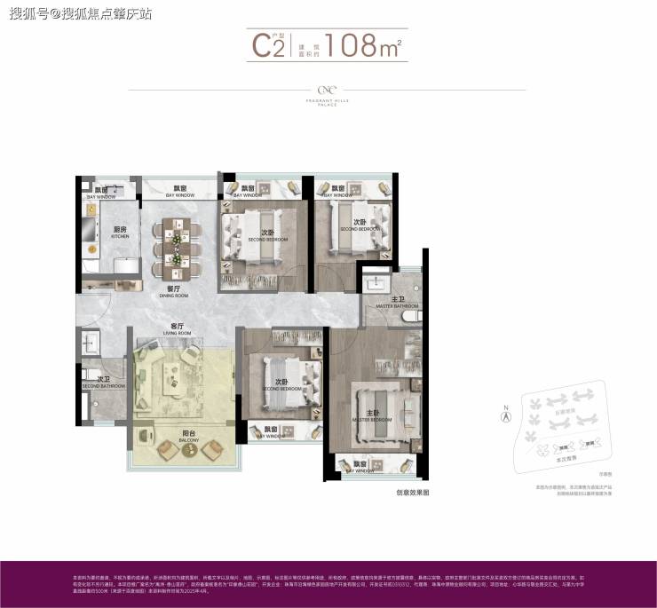 ▫建面约108㎡四房两厅两卫