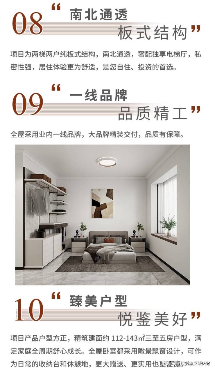 户型面积:112m精致3房、约126m舒适4房、143m2奢阔5房