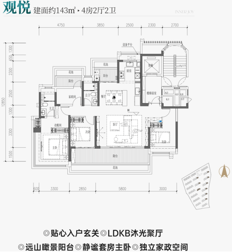 113-143㎡三房至四房、独梯入户板楼设计、270°全景飘窗、南北双阳台、超高得房率、体贴入微的精装标准,超高性价比尊享豪宅体验。