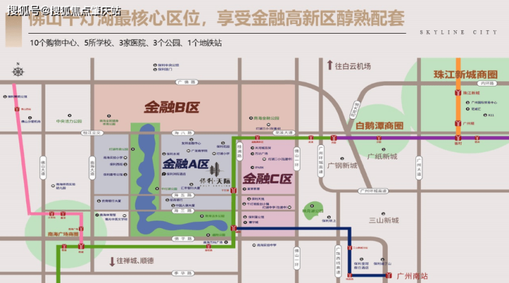 真正的地铁上盖!项目负一层直通千灯湖地铁站,2站到广州!6站到祖庙!南海有轨电车畅达广州南站!同时享受着“三横三纵”的立体交通路网,无障碍畅享广佛同城生活圈。