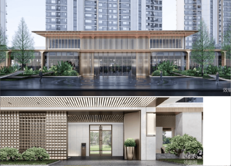 社区入口约4.5m挑高,真石+铝板主材精装奢阔迎宾门厅设计;酒店式首层入户大堂与地下楼栋入户大堂,双入户大堂打造尊崇归家礼仪。