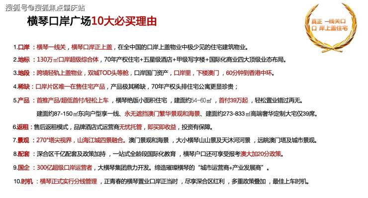 ✅横琴口岸头排住宅——口岸里唯一在售70年产权产品