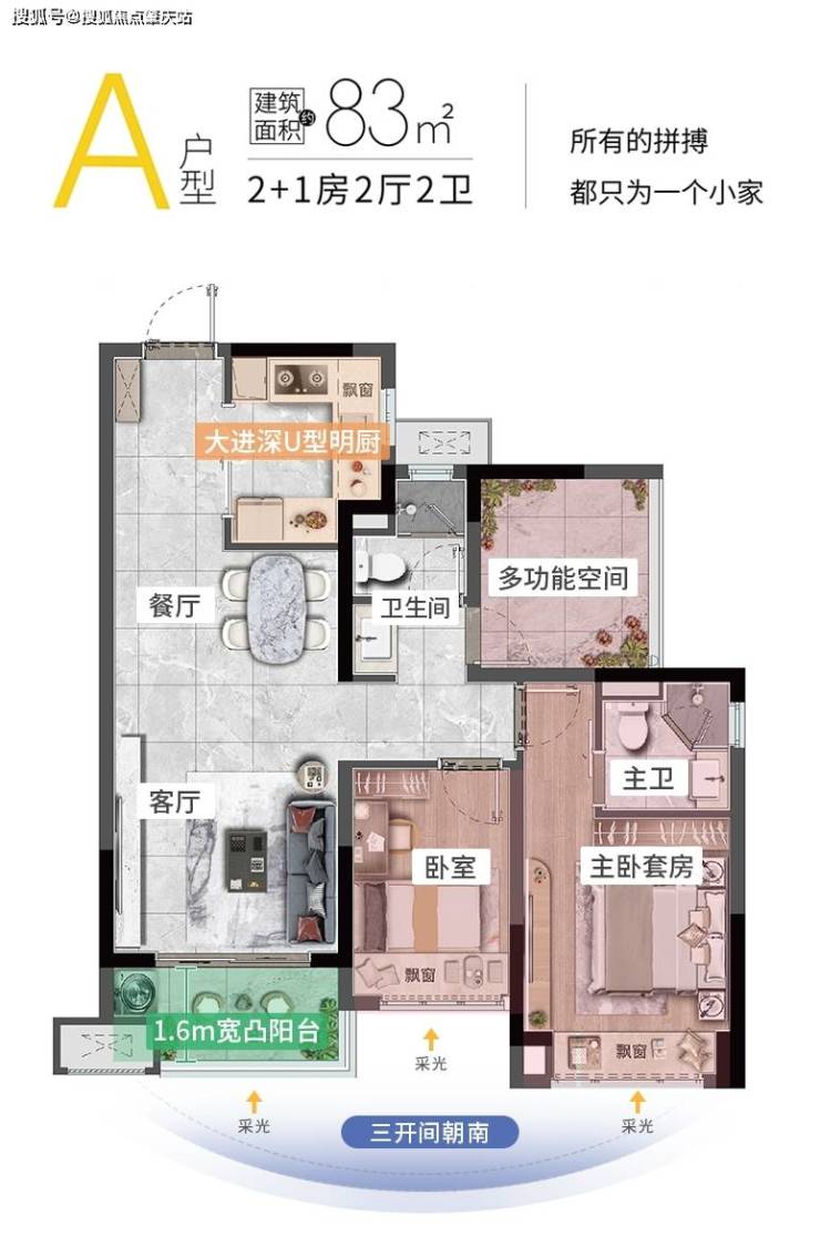 【5、6、7栋】:上车实用户型 同样面积多一房