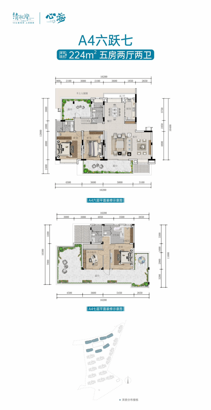 层高约3.3米~3.6米,可拓展至7房7卫;