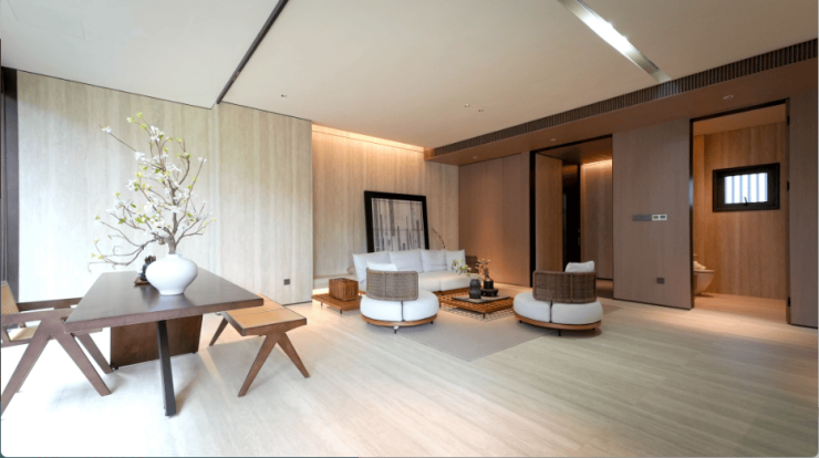 国家海岸寸土寸金,70年大产权属性的土地更加珍贵。项目深入考量时代峯层人士的高品质度假生活需求,以约0.6容积率、45%绿地率的奢阔尺度,建筑纯粹亲地建筑群,让生活和土地、自然保持更为亲密的距离,回应时代滨海生活的品质需求。