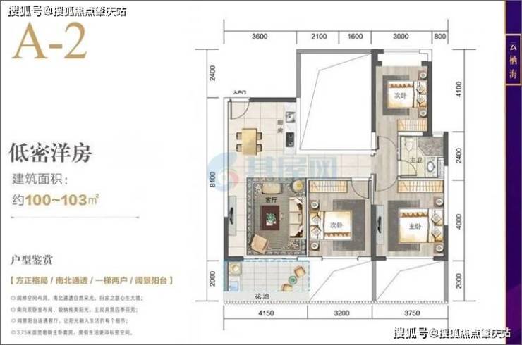 洋房A-2户型-建面约100.00㎡-3房2厅1厨2卫