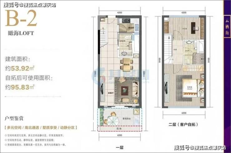 瞰海LOFTB-2户型-建面约53.92㎡-2房2厅1厨2卫