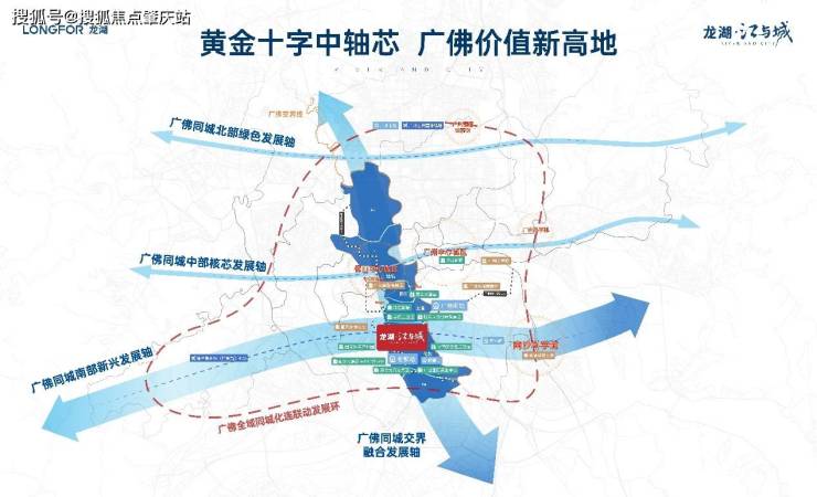 ①广佛4万亿超级城市群融合加速!在十四五规划助力下,“南部新兴发展轴”崛起!广佛交界依托地缘+地铁+产业先行成熟,自北向南形成“交界融合发展轴”,双轴交汇伦教,造就广佛新一代价值极核!项目执掌双轴红利,标定广佛置业新焦点!