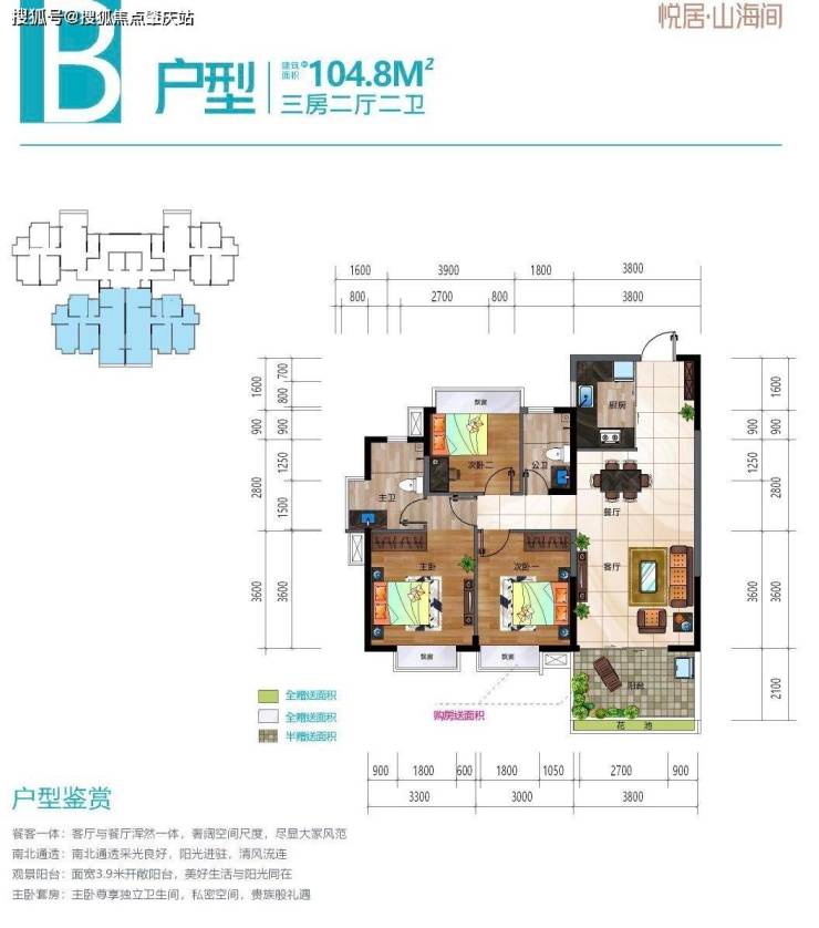房源范围:主推 3#、4# 楼中高楼层(8-16 层),建面 103-106㎡三房两厅两卫,全明户型,南北通透。