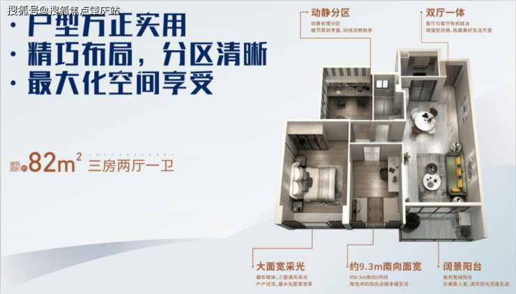 蝶形楼体,270°三面采光通风;全明通透户型,功能分区合理,品质生活从容有度。
