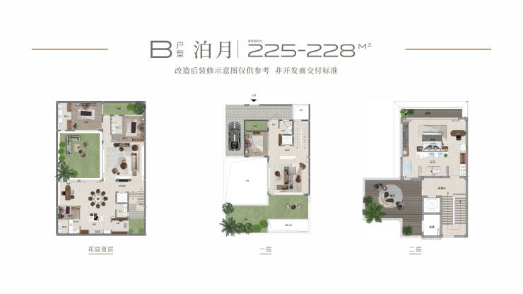 ◎住假户型 I 建面约225—228㎡『泊月』与建面约200—203㎡『揽云』两大半山院墅。