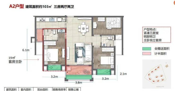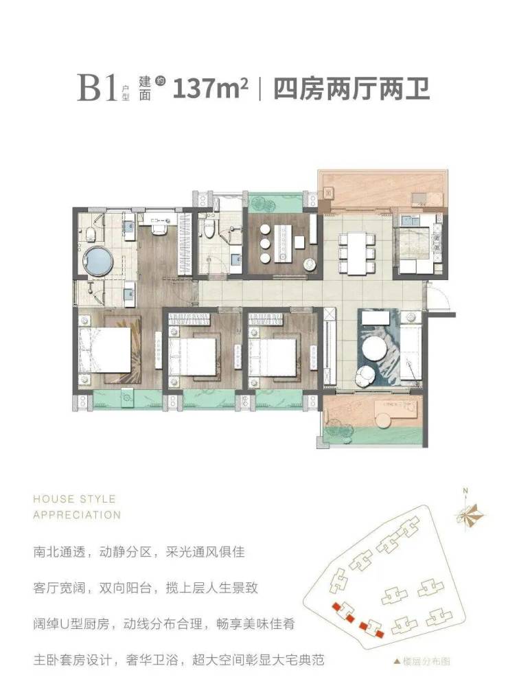 在售户型:103㎡,105㎡三房两厅两卫,128㎡,139㎡四房两厅两卫
