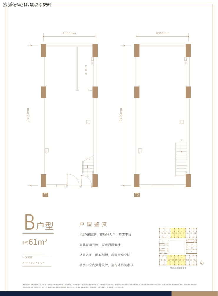 ⭐在售户型:约60㎡ 约4.9m双层空间