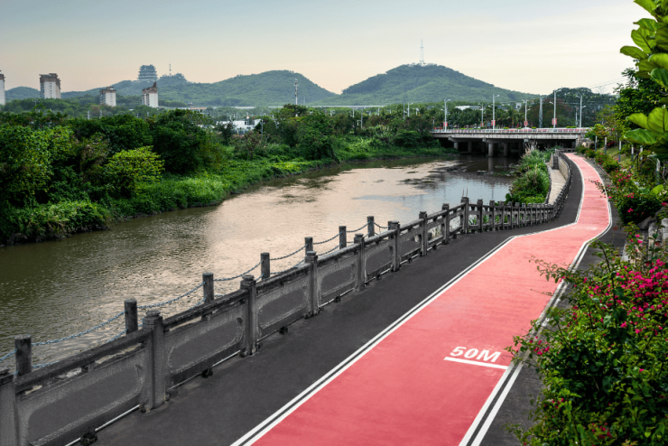 内外双跑道:社区内外双跑道结合,即可欣赏园区内部优雅景致,又可观山阅湖,是一条步步皆景的休闲运动轨迹,将运动与美景相结合。跑道内含荧光导航标示、景观绿化带、移动景观坐凳、彩色水泥涂料铺地、临时停车位、消防车入口等。