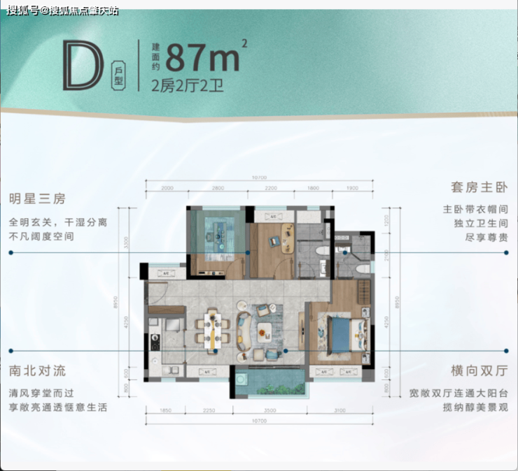 建面约87㎡2+1拓展空间,稀缺大横厅,明星户型