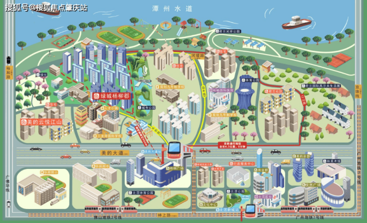距广州地铁7号线美的大道站约900米(7号线已开通),驱车约3分钟即达