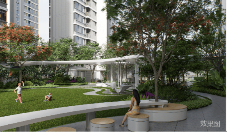 •丰富生态休闲区:百米归家廊道、林下平台、花园卡座等,打造具有自然感、品质感的调性空间。