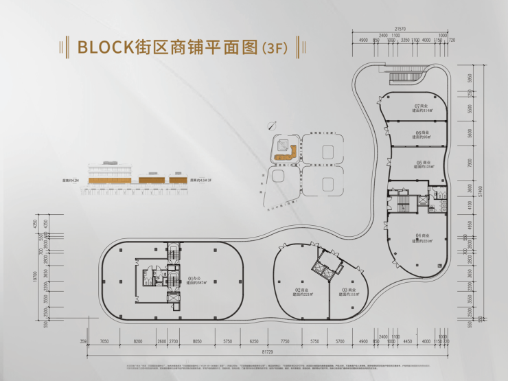 1 号楼商业:建面约 145-290㎡精品商业(1-3 层),1 层挑高 6m,面积约 200-245㎡;2 层挑高 4.5m,面积约 200-280㎡;3 层挑高 4.5m,面积约 145-245㎡。建面约 33-224㎡一线临街商铺(1-5 层),1 层挑高 6 米,面积约 33-123㎡;2 层挑高 4.5 米,面积约 75-174㎡;3 层商业 + 办公挑高 4.2 米,面积约 95-587㎡;4、5 层办公挑高 4.2 米,面积约 587-601㎡。
