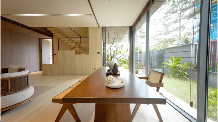 国家海岸寸土寸金,70年大产权属性的土地更加珍贵。项目深入考量时代峯层人士的高品质度假生活需求,以约0.6容积率、45%绿地率的奢阔尺度,建筑纯粹亲地建筑群,让生活和土地、自然保持更为亲密的距离,回应时代滨海生活的品质需求。