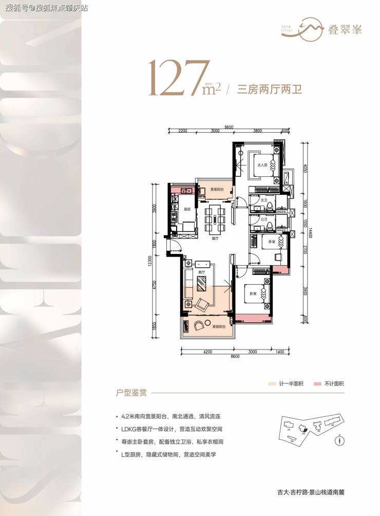 城市中心罕见2.0容积率,纯粹豪宅规划尺度,营造疏阔的建筑空间。叠翠峯南北坐卧,藏风聚气,于半山高度,360°全无遮挡,推窗即远眺城市与山,前后千米无楼间距遮挡,定义半山顶豪物业典范。