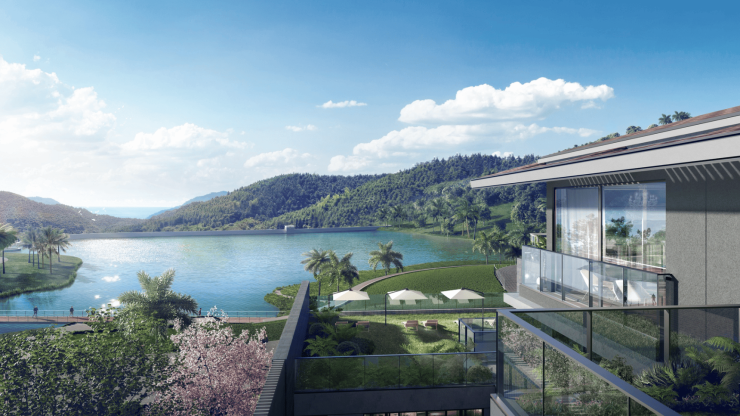 ◎山海视野 I 背靠白石岭,面朝亚龙湾,内含蓝月湖,山林湖海在此一望尽收。