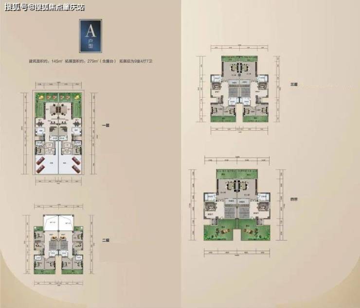 洋房:143-168㎡四房,1 梯 2 户,带入户花园及双阳台