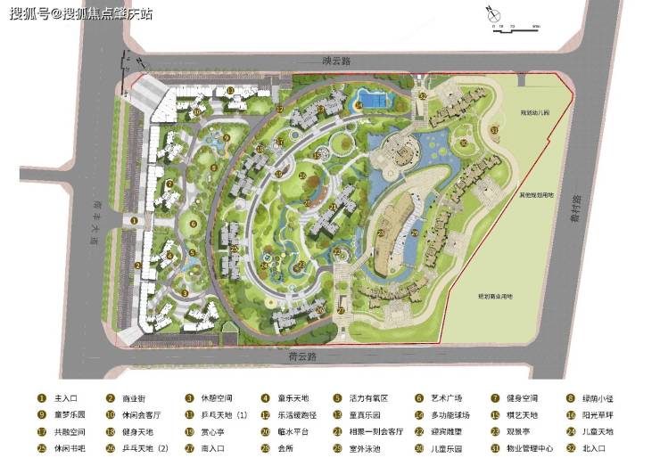 度假式园林(儿童乐园、多功能球场、晨练广场、休闲书吧等),幼儿园,高端会所(会所内配有健身房、红酒房、桑拿室、室内外泳池等),规划有商业街区