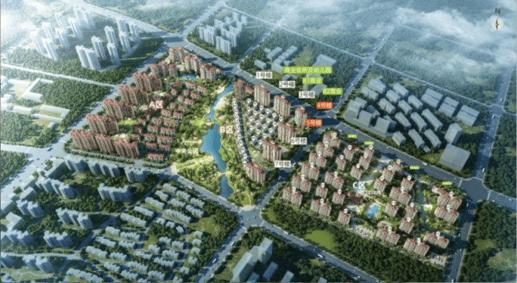 B地块:共743户,6-7号楼精装修及工程施工中(2024年9月交房);1号楼开发中,已建设到4层;2号、3号,4号、5号楼及31栋低层住宅。