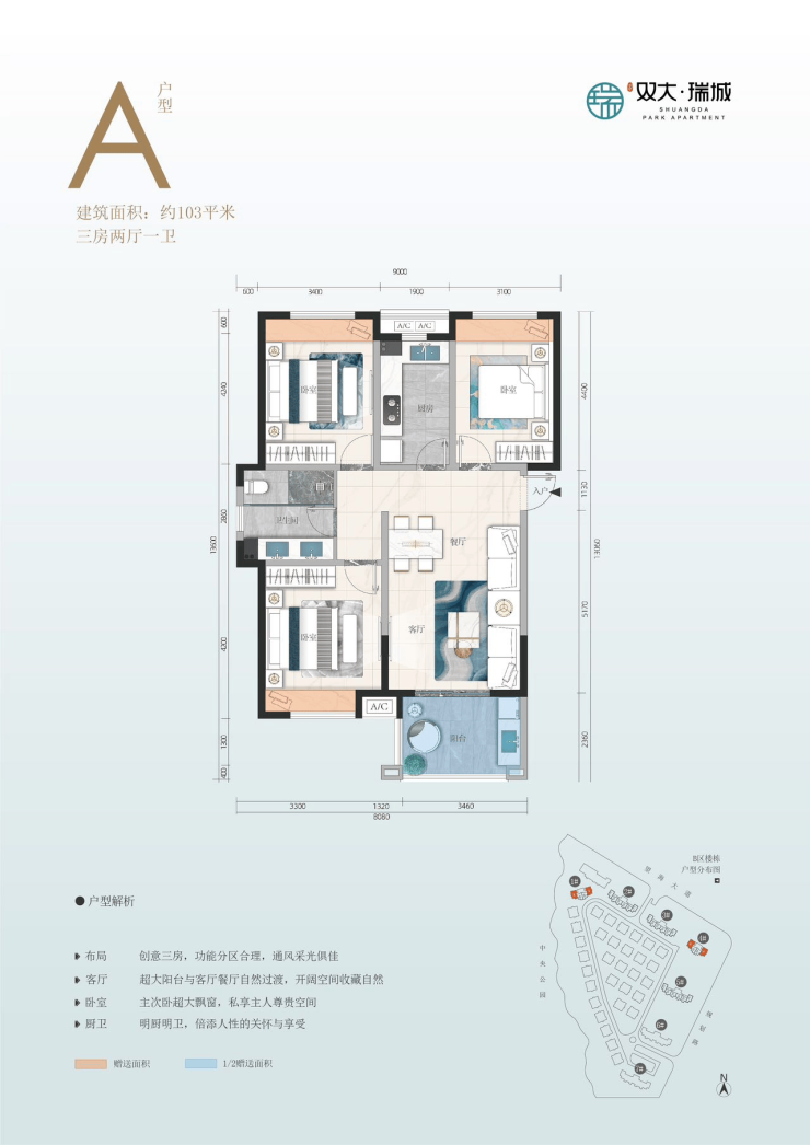 🌳【加售面积】B区83㎡两房、103㎡三房