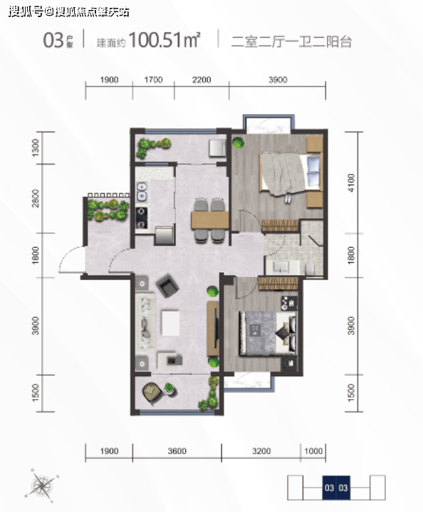 户型:有 65 - 108㎡的 1 - 2 房,如建筑面积约 108.86㎡的二室二厅二卫二阳台户型、约 65.81㎡的一室一厅一卫一阳台户型等 。