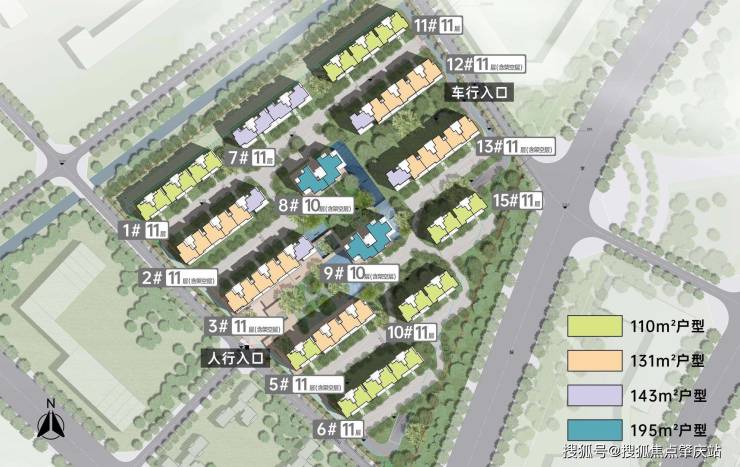 【面积区间】建筑面积约110㎡、131㎡、143㎡、195㎡