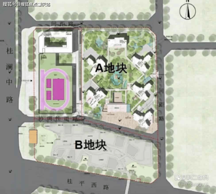 A区为住宅+小学,小学设于靠近桂澜路一侧