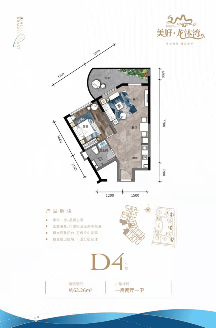 ④ 三房户型三面采光,空间方正合理,双独立明卫,270°环型瞰海阳台