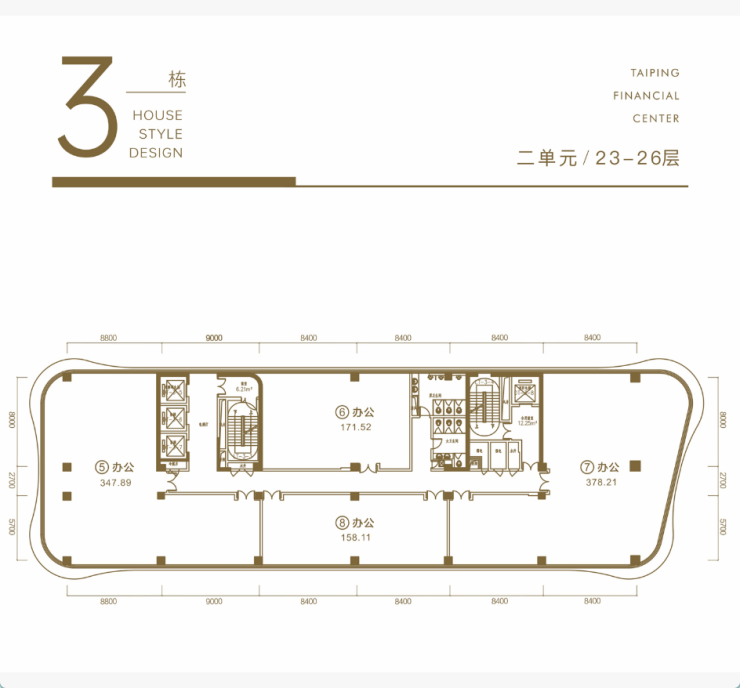 星级空间——8米大开间,6米短进深,进一步扩大空间感,非核心筒建筑形态,空间梁柱少。