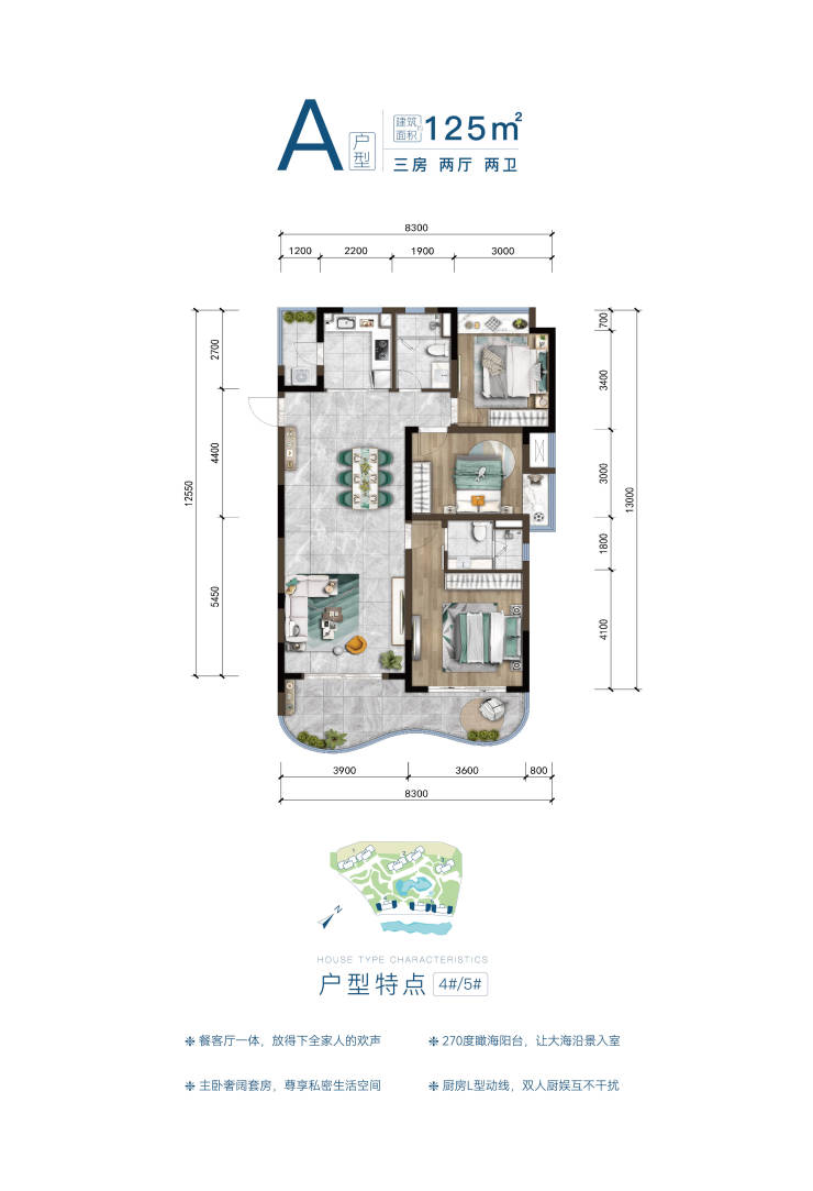 【户型】?约85-125㎡观山瞰海两居、三居