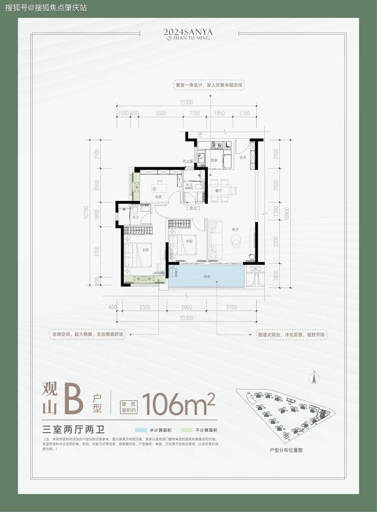 ?观山 B户型-建面约106㎡ 三室两厅两卫