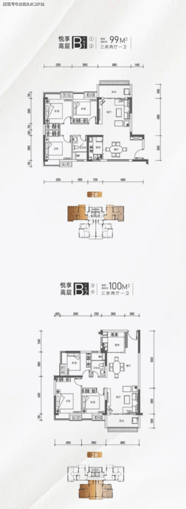 在售户型:建筑面积约99-100㎡三房两厅一卫、约116-119㎡三房两厅两卫