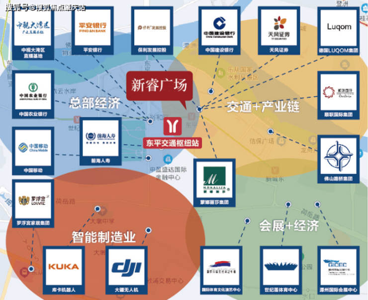 【500强企业总部聚集】项目周边超20多家大型企业聚集,如中国移动总部、中国建设银行总部、佛山电视台、梦娜丽莎集团、顺联国际集团等,包含多家世界500强企业总部。