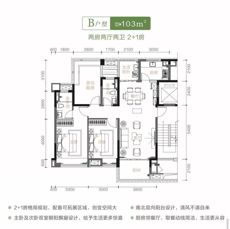 【户型区间】建面约103、107、108、128、143㎡三房