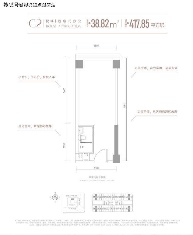 首推5幢建築面積約409-420平方呎高定資產,約3.9米層高小面積高實用,城芯優質資產。