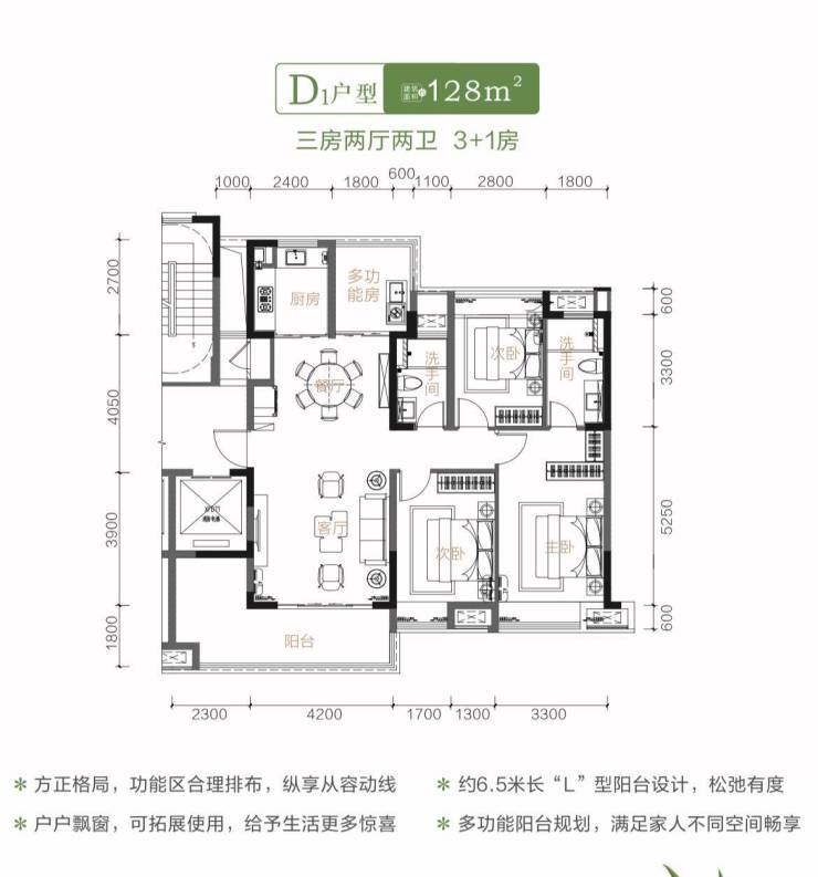 建面约103~143㎡ 三房至四房全板房设计,力求善美,大面宽短进深,全明采光布局,南北通透,方正户型,人性化设计,飘窗,阳台可拓展,尽显奢享品质空间,让创意和空间无限♾延伸,多一室少一室。