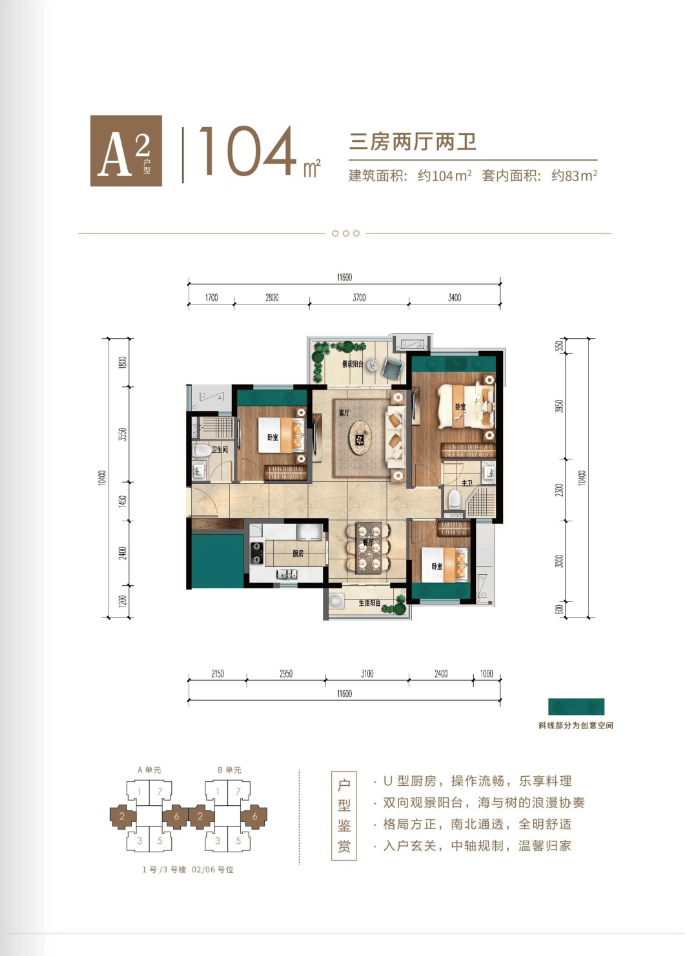 建筑设计:采用 BDI 灰感轻奢立面,浪形线条律动有致,建筑风格现代简约,又融入了热带风情元素,外观时尚大气,同时 70 米超大楼间距,保证了充足的采光和通风,也为住户提供了更广阔的视野。