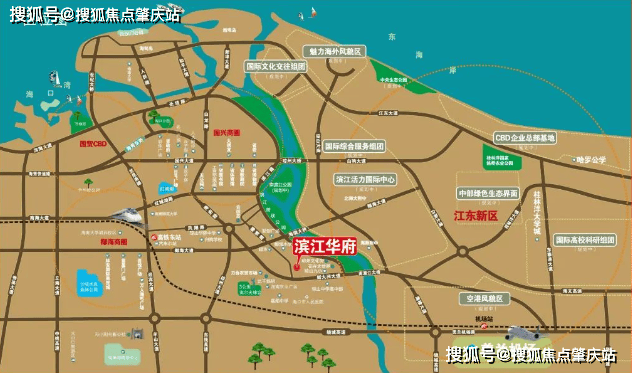 项目地址:海口市琼山区椰博路 65 号,位于滨江西路南段,与江东新区隔江相望,椰海大道、新大洲大道、滨江路三条主干线环抱。