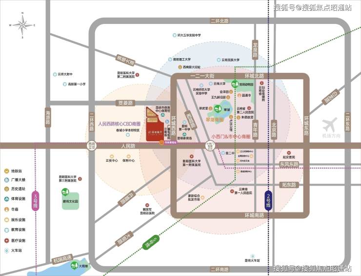 已建成的昆明传统小西门商圈,南屏街商圈、恒隆广场;云大医院、春城小学等都汇聚于此,无论城市发展怎样扩张,核芯资源始终沉淀于中芯。