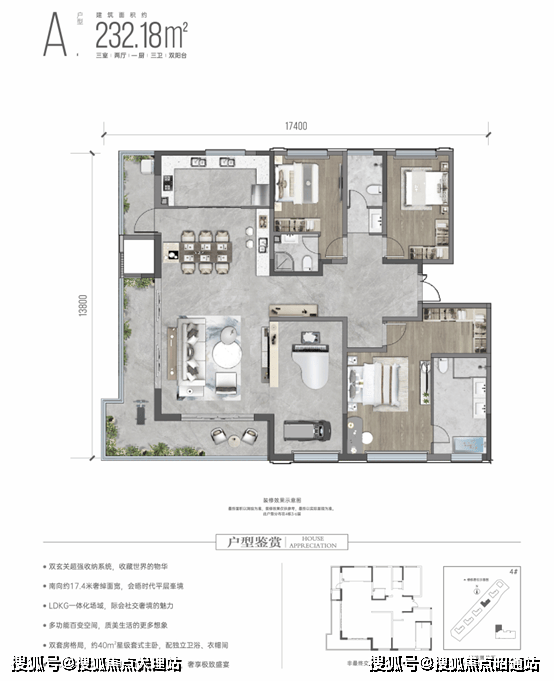 双玄关入户,双套房设计,大面宽横厅